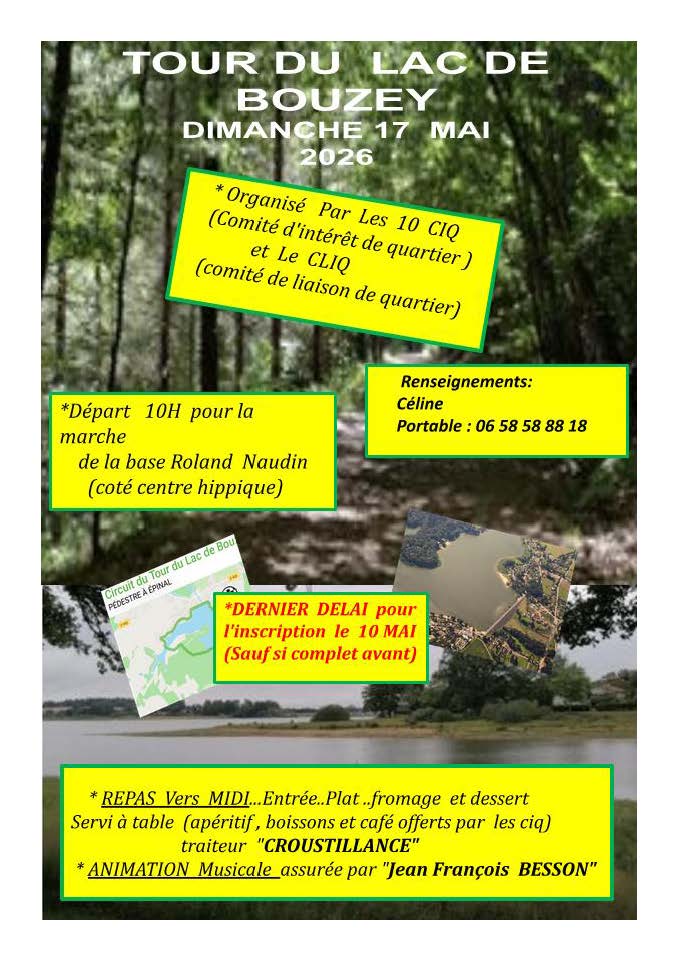 Les Comités d'intérêt de quartier dont le CIQOS et le comité de liaison de quartier (CLIC) ont le plaisir de vous convier au tour du lac de Bouzey !